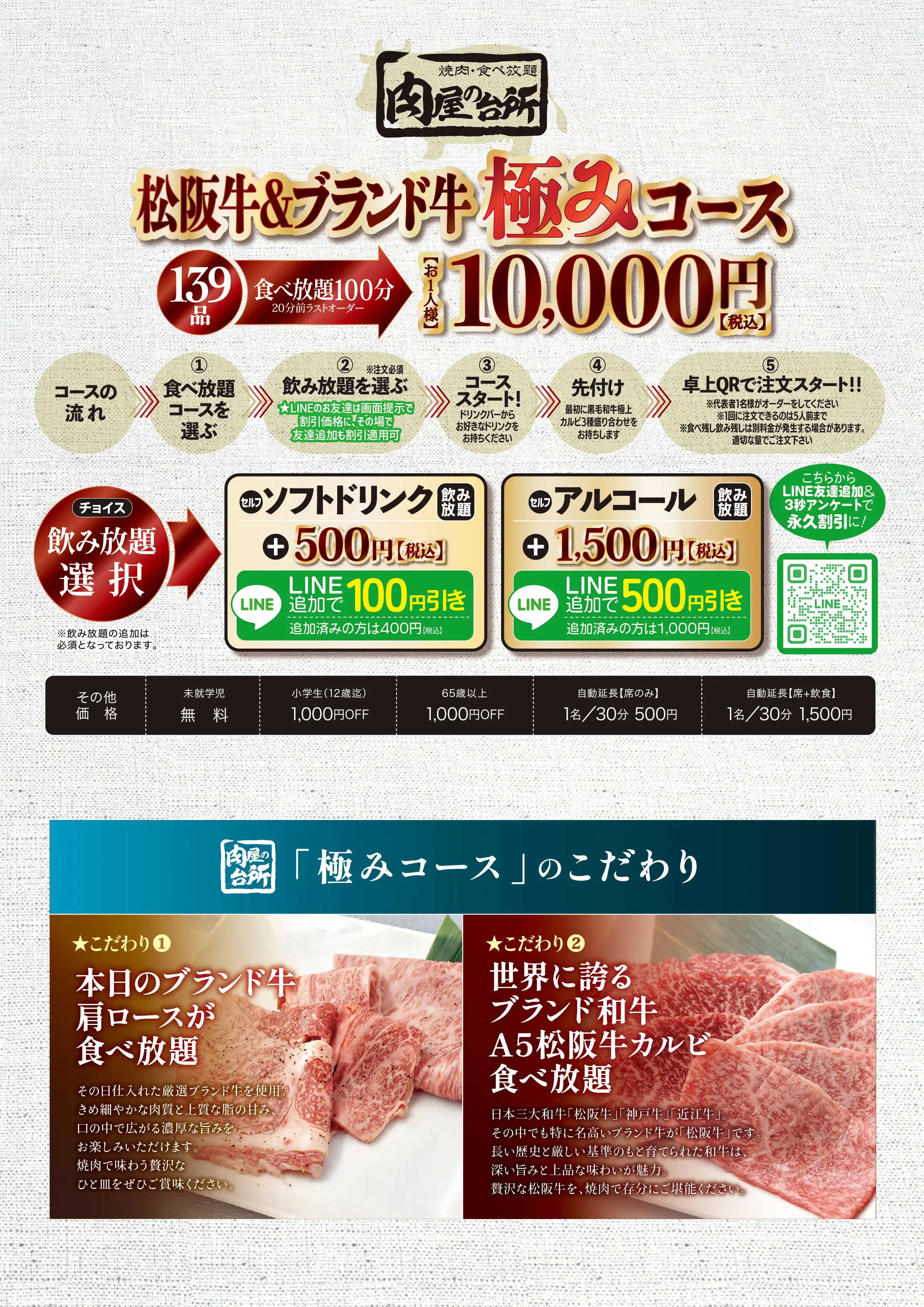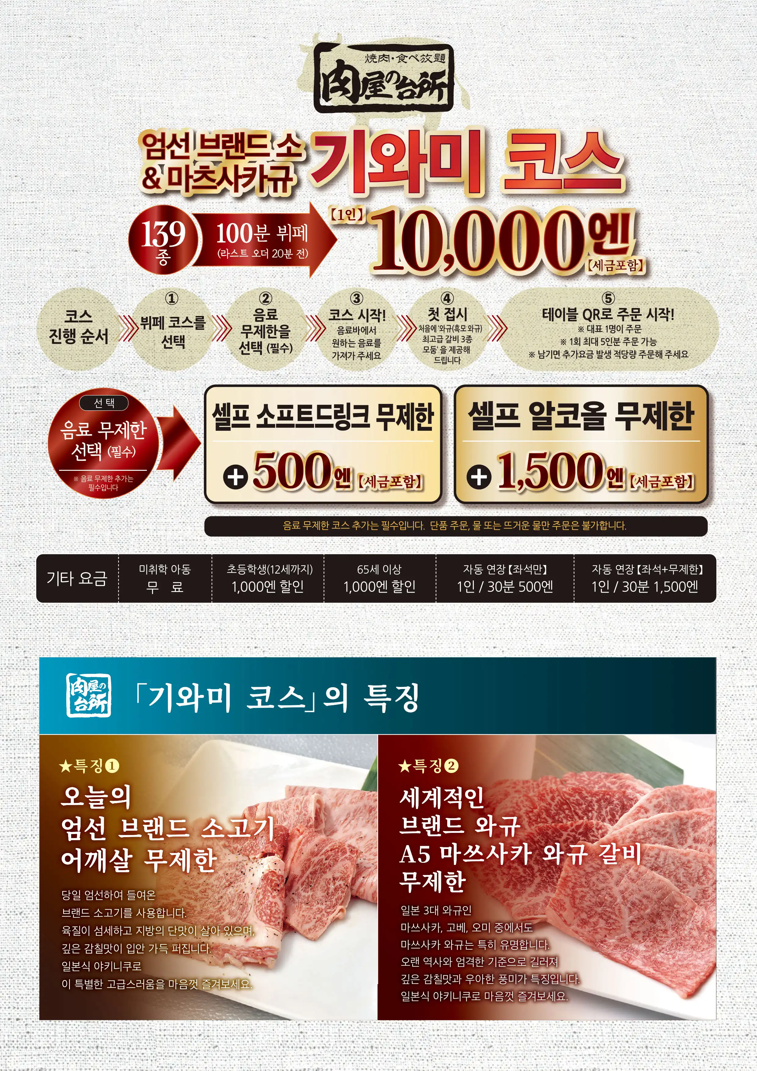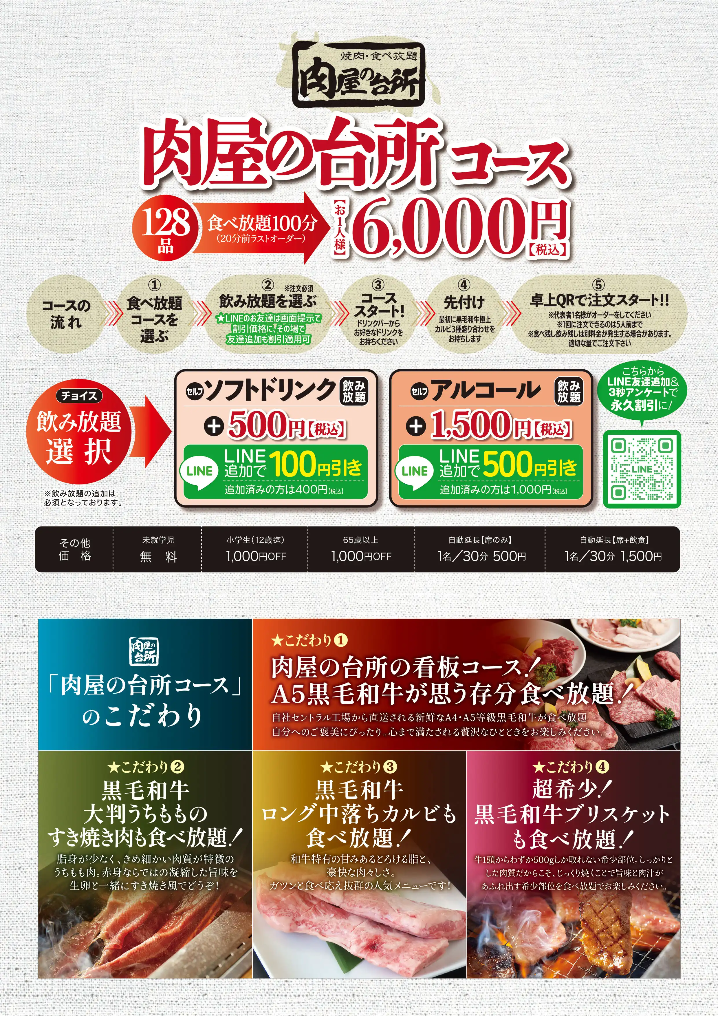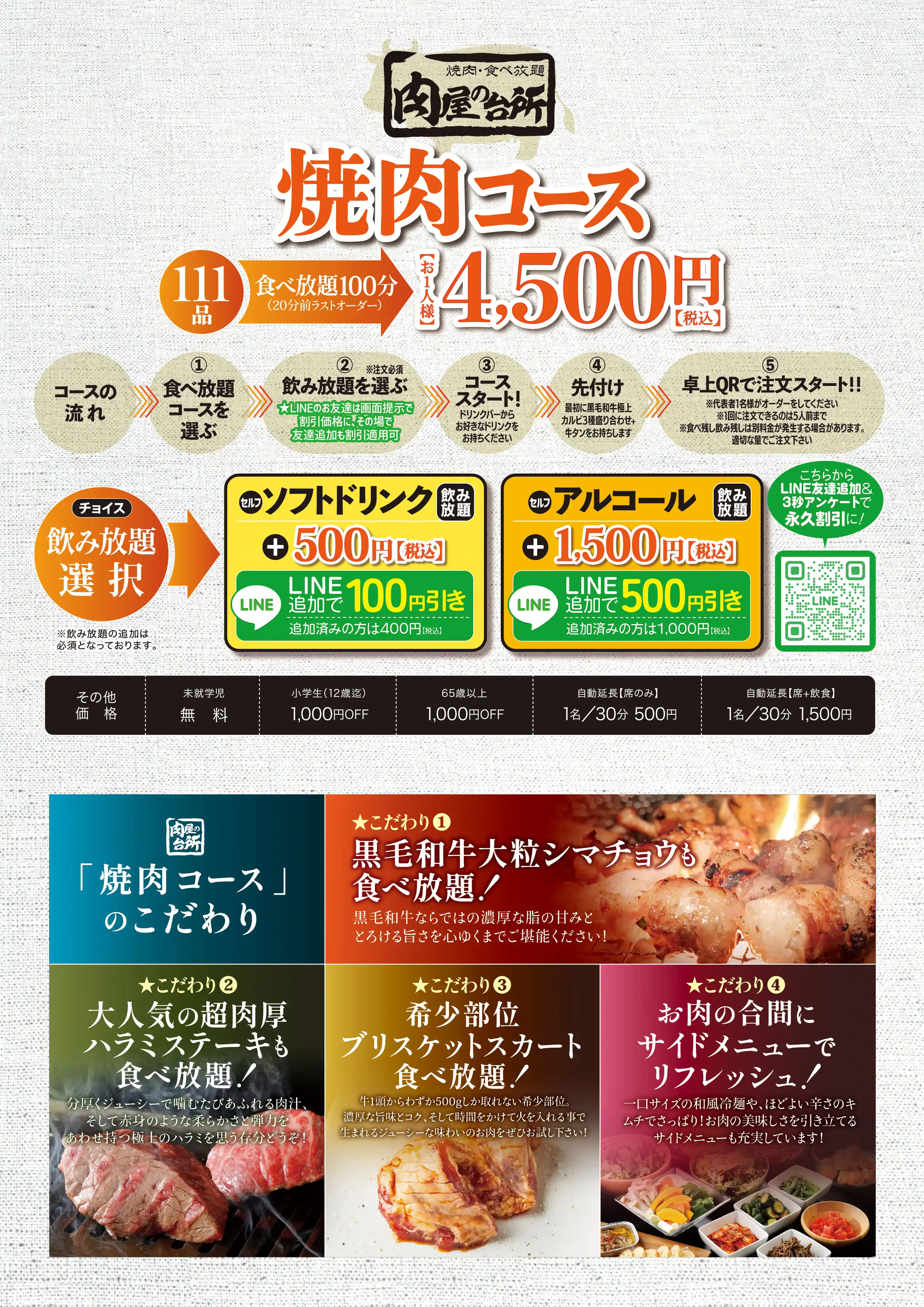 心ゆくまで上質な焼肉食べ放題をお召し上がりください。